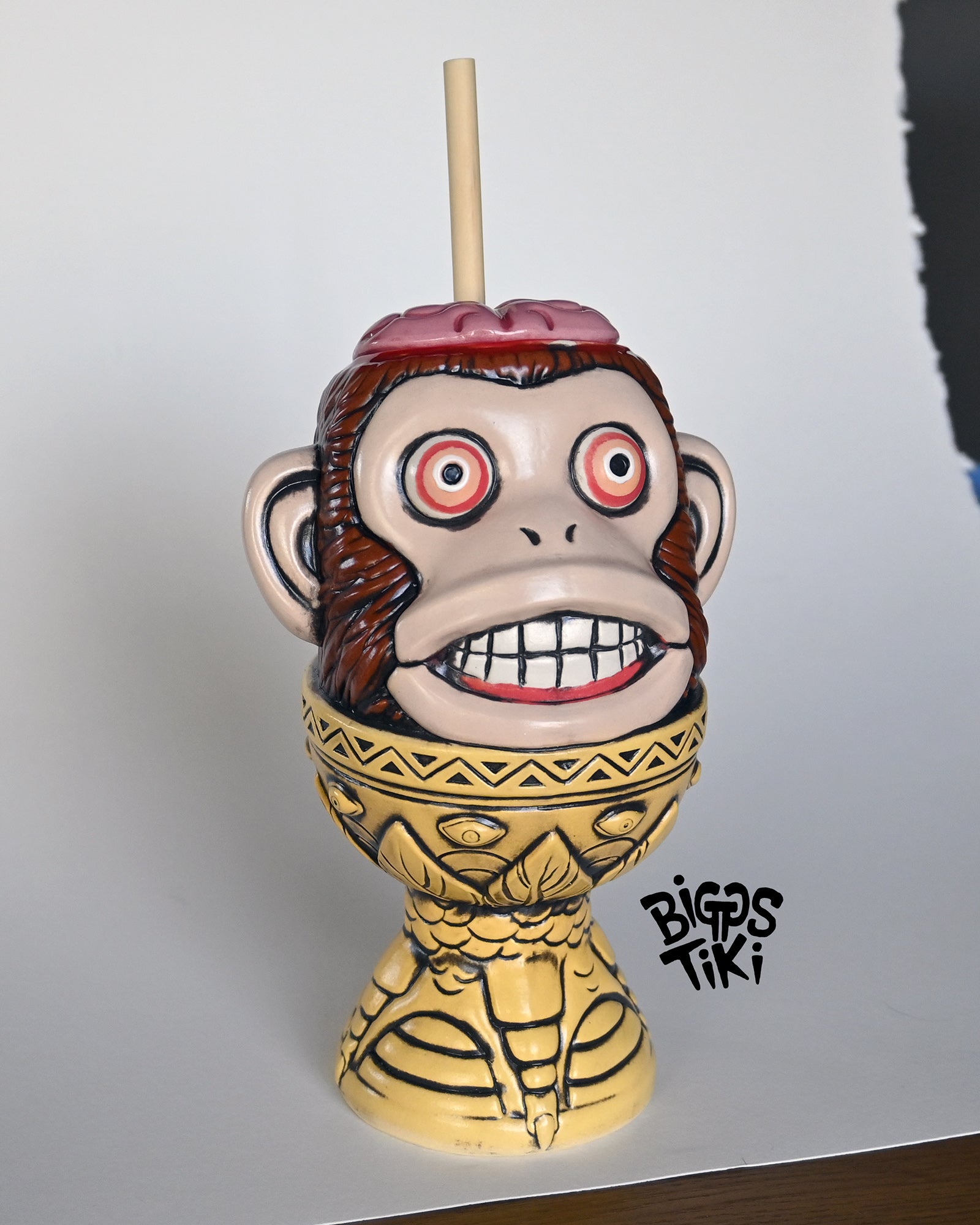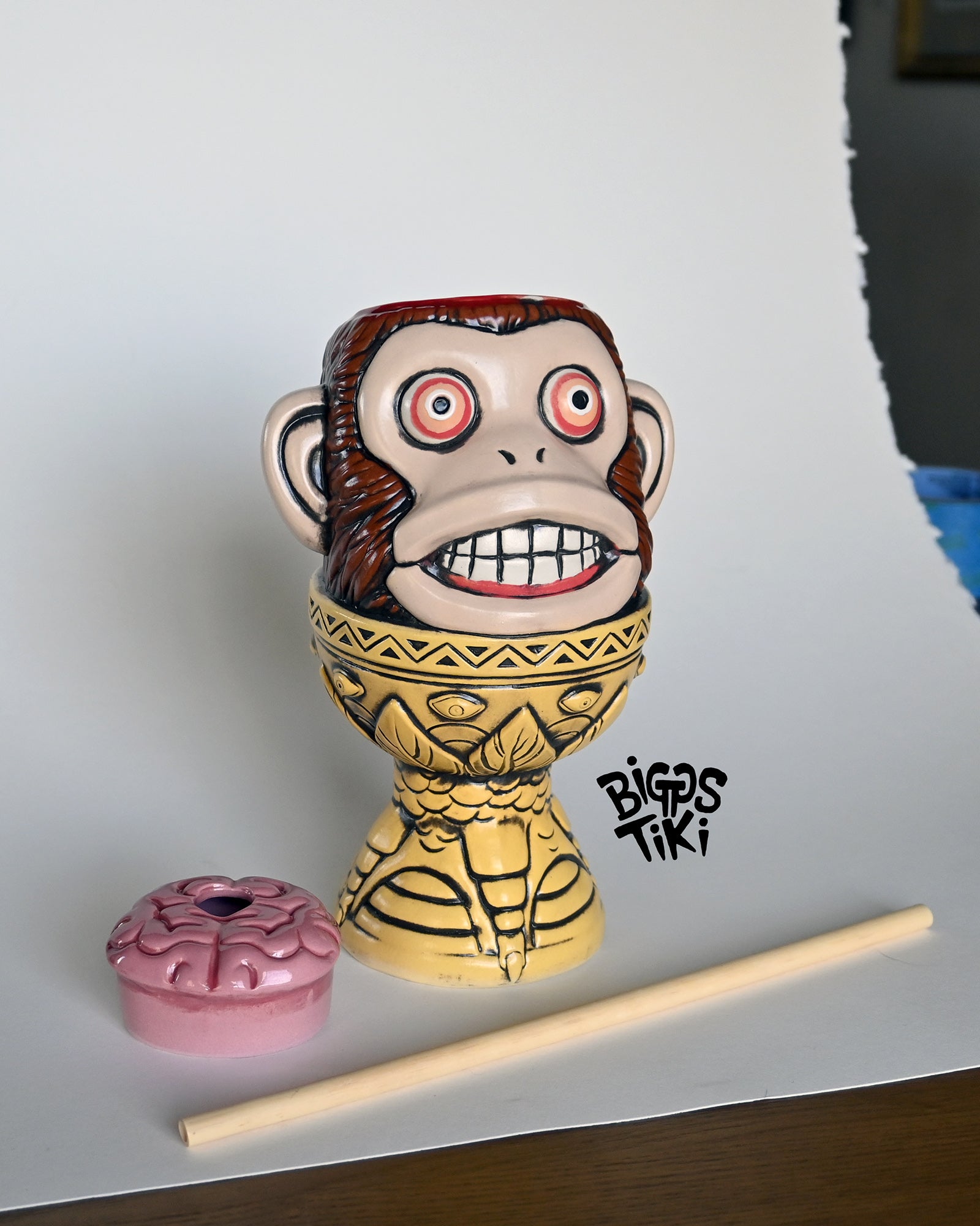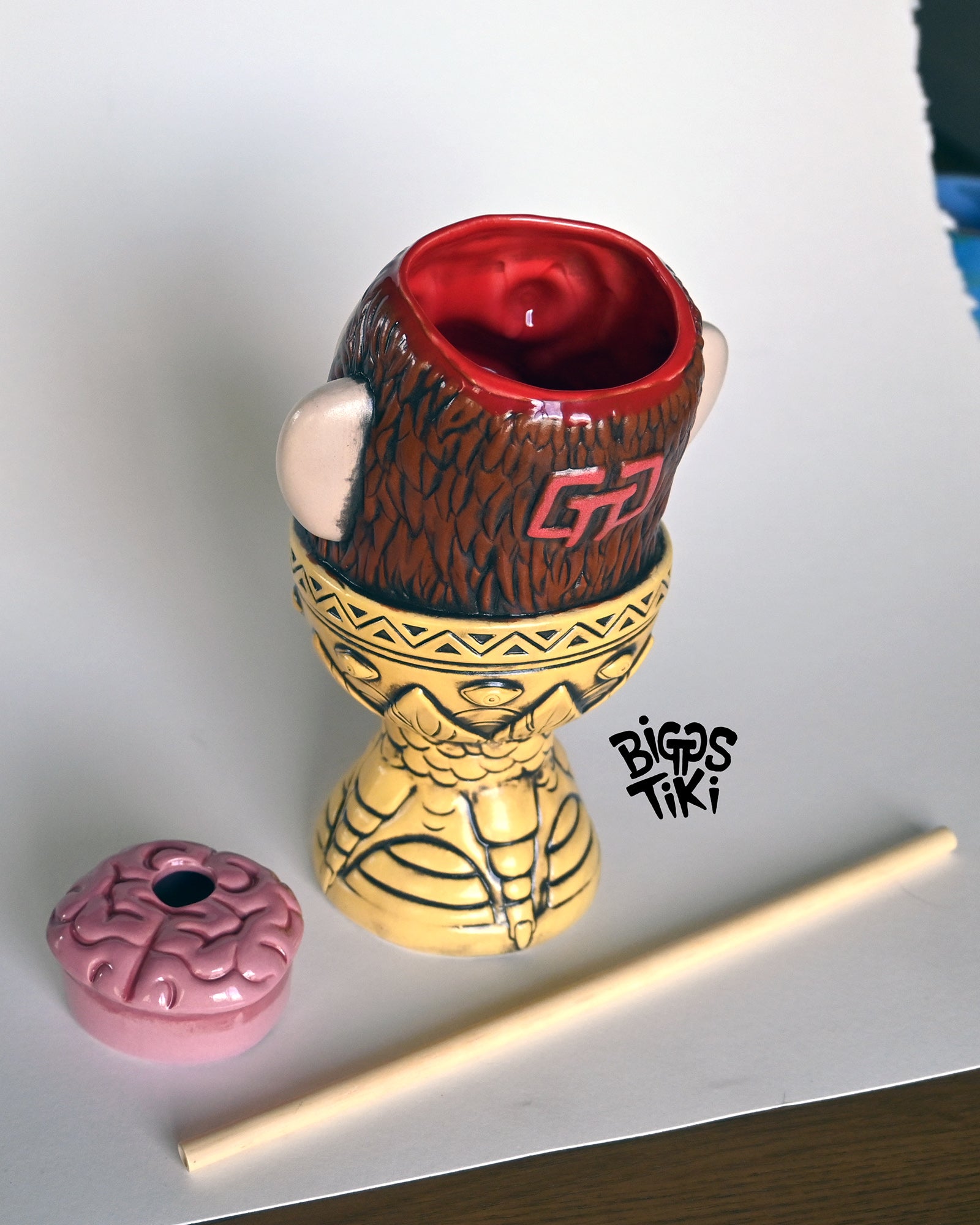 Standing at 7 3/4" tall, this hand crafted ceramic tiki mug holds about 24 oz. of your favorite beverage. Hand made by artist Mike Biggs, only 20 were made in this colorway and is hand signed and numbered on the bottom.